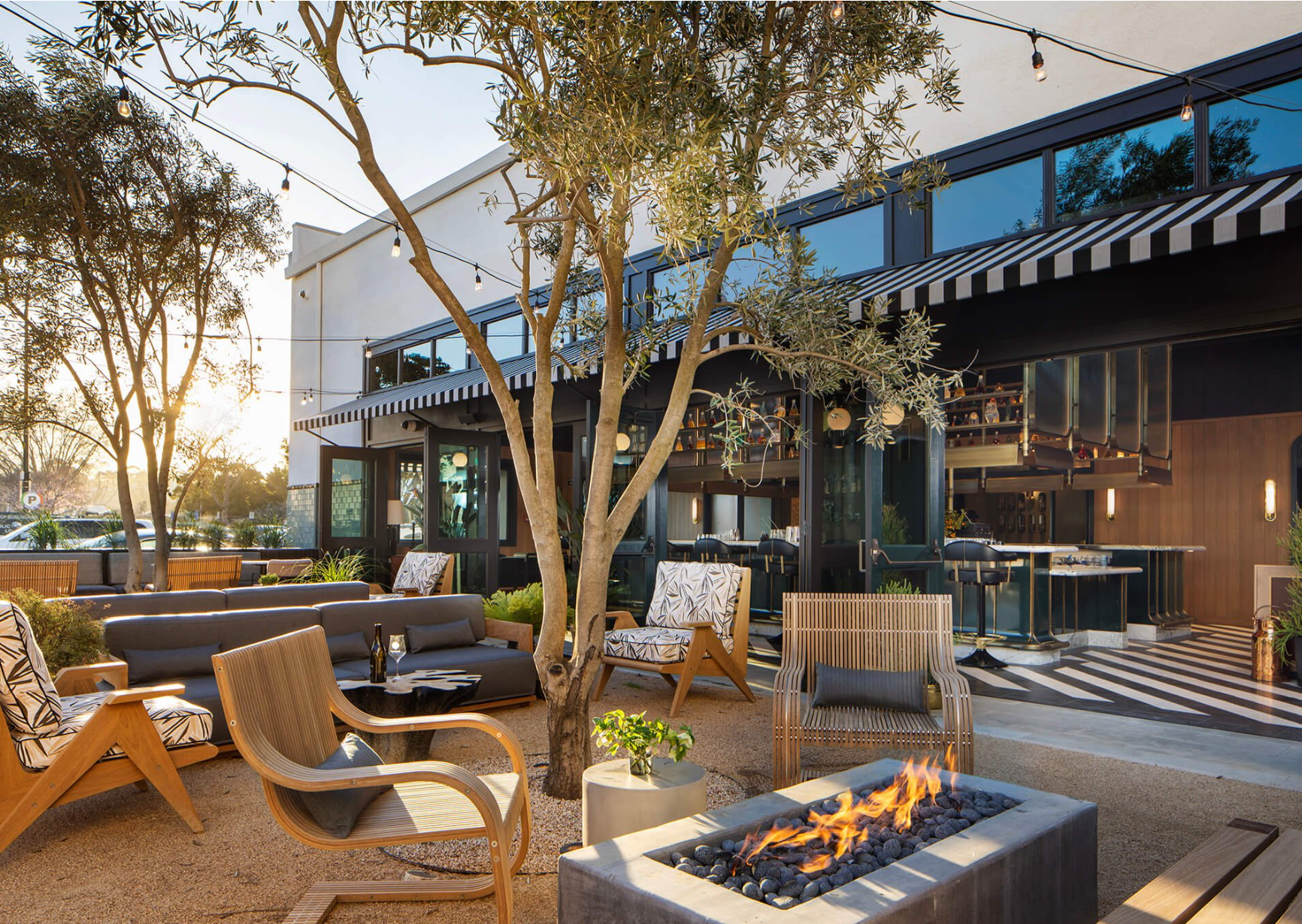 The result is hospitality outdoors with interior discipline: tactile materials, clear circulation, and planting chosen for presence at distance and nuance up close—California ease, polished enough for a nightly crowd.